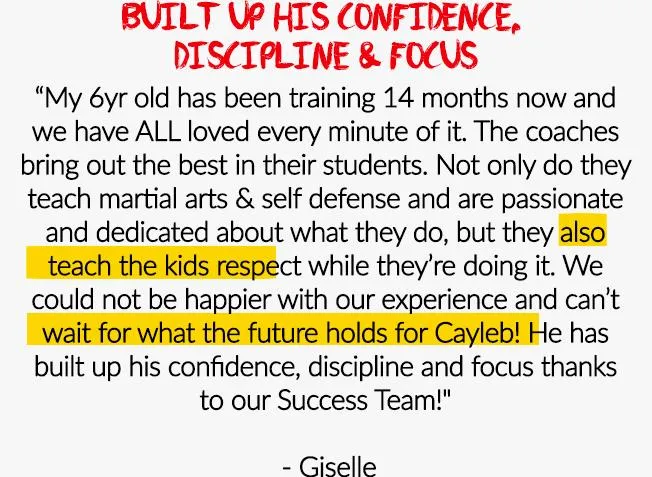 Imagine what your child will be like in just the first 7 days! Kids will gain confidence, learn self-defense skills,& have better focus GUARANTEED!